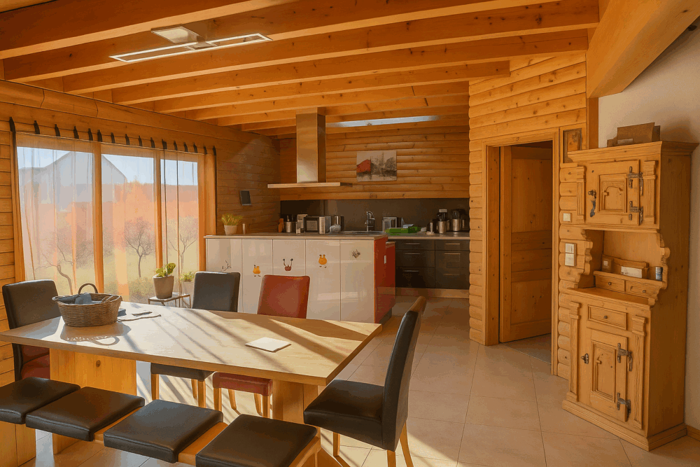 Dieses charmante Holzhaus bietet ein warmes und einladendes Zuhause für die ganze Familie. Die hellen Räume sorgen für eine freundliche Wohnatmosphäre und lassen viel Raum für individuelles Einrichten. Eine gemütliche Veranda lädt zum Verweilen ein und erweitert den Wohnraum nach draussen. Für erholsame Stunden steht eine moderne Infrarotsauna zur Verfügung, während die kleine Werkstatt Platz für Kreativität und handwerkliche Arbeiten bietet. Das Haus ist lastenfrei und sofort bezugsbereit, ideal für alle, die ohne Umwege in ihr neues Zuhause einziehen möchten. Alles auf einen Blick: + HIGHLIGHTS: Echtes Natur Block-Haus, Echt-Holz + GODDIES: Infrarotsauna, kleine eigene Werkstatt, Veranda + BEZUG: per sofort oder n.A., top Zustand, bezugsbereit + WOHNFLÄCHE: 203 m² – helle Räume + PARKING: 2 Garagenparkplätze, 4-5 Aussenparkplätze + LAGE: Zentral, Schule 4 Min. zu Fuss, Einkaufsmöglichkeiten 2-3 Min via Auto erreichbar + NUTZUNG: kann auch als Bauland genutzt werden, genügend Potential für einen Pool Bei Interesse senden wir Ihnen gerne einen ausführlichen Objektbeschrieb inklusive sämtlichen Informationen und freuen uns Sie persönlich an einem Besichtigungstermin beraten zu dürfen. WENET AG - Immobilien der KI Group AG since 1974
