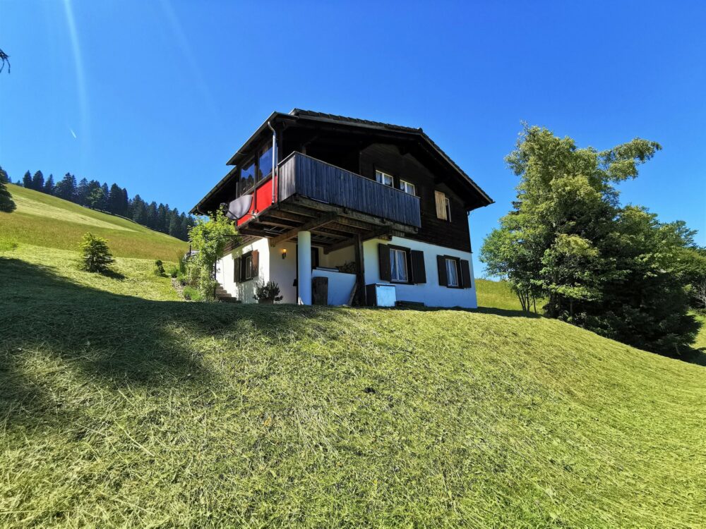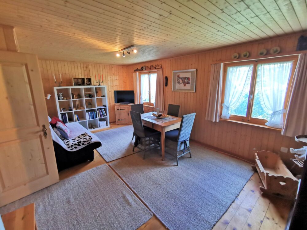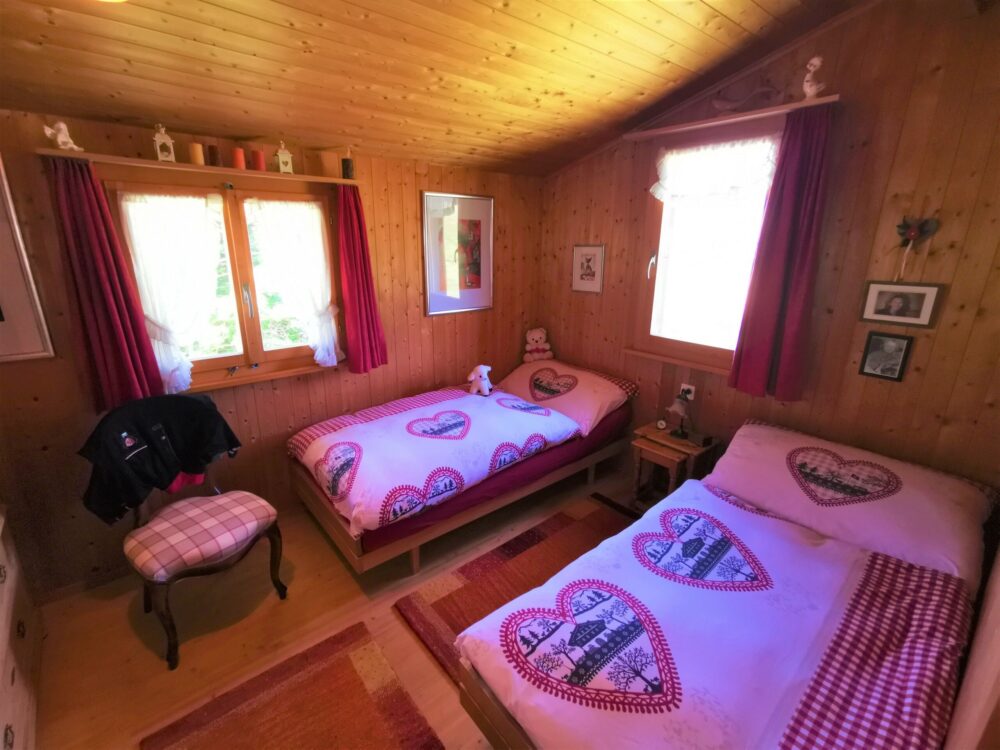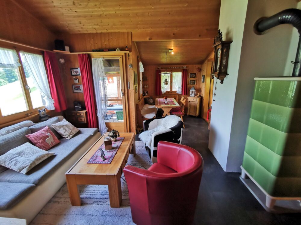 Das Grundstück beinhaltet insgesamt 755m2 Grundstücksfläche. Die umliegende Wiese wird auf Wunsch von einem Nachbarn gemäht, sodass Sie Ihr Ferienfeeling in vollen Zügen geniessen können. Die untere Etage kann auch über die Naturtreppe mit anschliessend überdachtem Sitzplatz erreicht werden. Hier findet sich ein weiteres, sehr charmantes Wohn-/ oder zukünftiges Elternschlafzimmer. Des Weiteren stehen hier ein Kellerabteil sowie ein Vorraum mit Waschbecken zur Verfügung. Die gesamte Liegenschaft ist in einem sehr guten Zustand und wurde laufend renoviert, modernisiert und gepflegt. Dieses Bijou verfügt über eine ganzjährige Zufahrt, 365 Tage im Jahr geniessen und Energie aufladen.