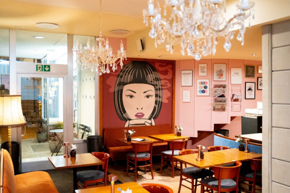This restaurant with bakery and coffee shop offers plenty of seating in a quiet and sunny location