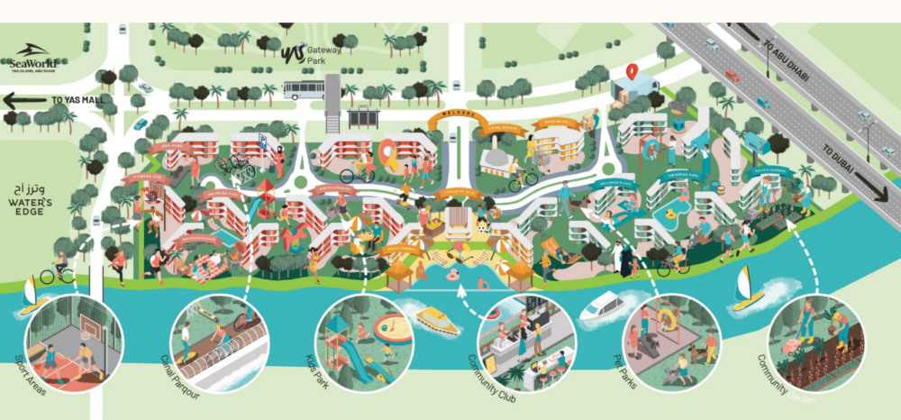 La propiedad está situada en una zona residencial de lujo, tranquila y con una alta calidad de vida, caracterizada por unos terrenos bien cuidados, una arquitectura moderna y mucha privacidad. El barrio está salpicado de frondosos parques, caminos bordeados de palmeras y exclusivos retiros que invitan a dar relajantes paseos o a salir en familia, una rareza en las ubicaciones urbanas de los Emiratos.