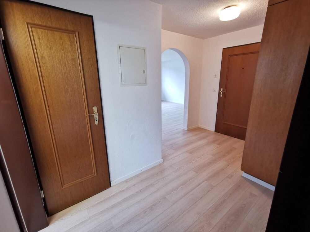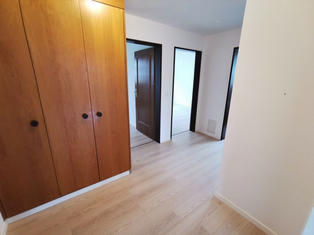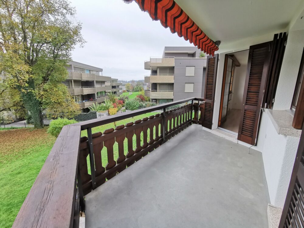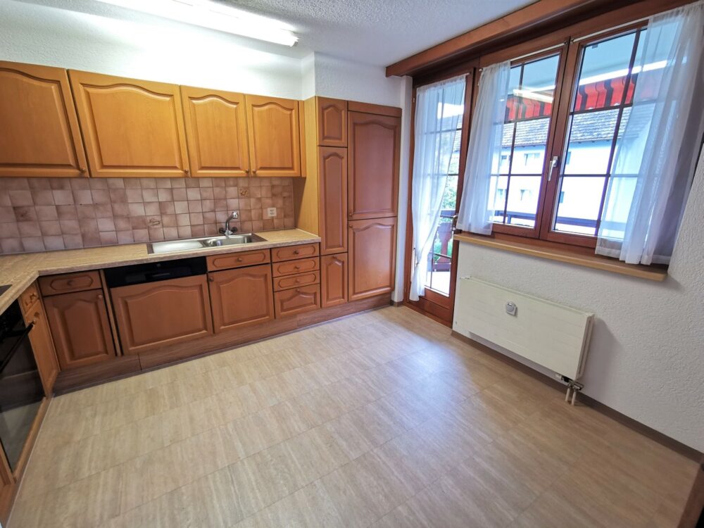 Nach dem einladenden Eingangsbereich, ausgestattet mit platzsparenden Einbauschränken, öffnet sich das Wohn- und Esszimmer mit bevorzugten Deckenhöhen, direktem Balkonzugang und Indoor-Cheminée für erholsame Abendstunden oder als Ersparnis der Nebenkosten. Die ausgestattete Küche wurde laufend unterhalten und bietet weiteren zuritt ins Freie.