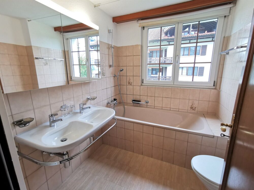 Die 2 geräumigen, hellen Schlafzimmer bieten viel Platz und individuelle Einrichtungsmöglichkeiten. In der Tageslicht-Nasszelle finden sich DU/WC und auch für den Besuch ist ein zusätzliches Gäste-WC vorhanden. Im Preis inbegriffen ist ausserdem ein Kellerabteil sowie ein Garagenparkplatz.
