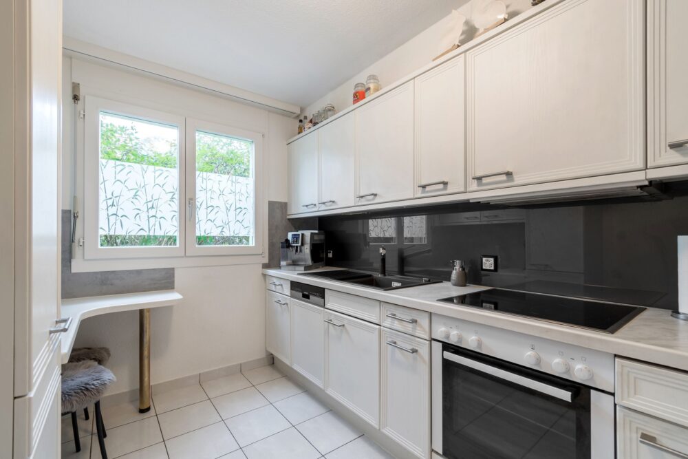 Der pflegeleichte Garten, welcher für die Kinder viel Platz zum Spielen bietet, ist für Sie ein idealer Ort zum Entspannen. Dieser verblüffende Aussenbereich bietet viel Privatsphäre und sehr viel Ruhe. Die innovative Küche lädt nicht nur Hobbyköche ein, sondern überzeugt mit modernster Technologie für Feinschmecker und ist top ausgestattet. Hier können Sie kulinarische Köstlichkeiten in aller Ruhe und mit viel Platz zubereiten. Eine Etage weiter finden Sie drei gemütliche und helle Schlafbereiche sowie ein Balkon mit Südwest-Ausrichtung. Die moderne Nasszelle mit Badwanne/WC, rundet das ganze Angebot perfekt ab.