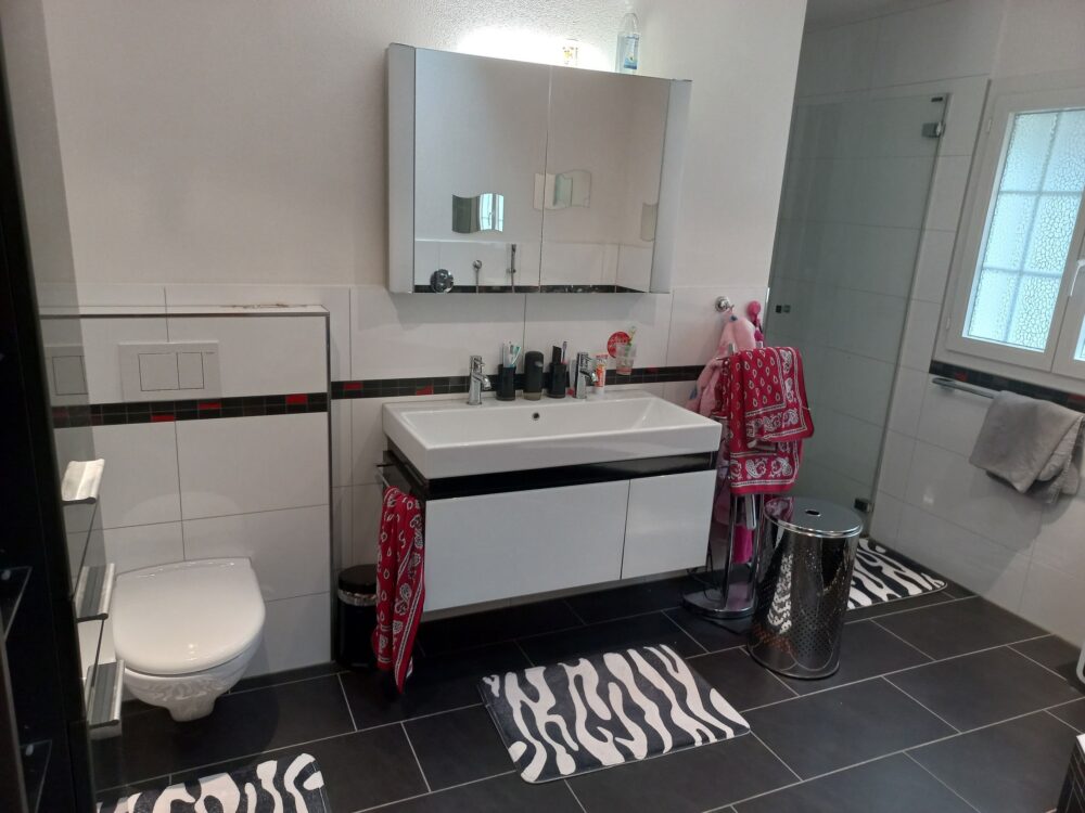 Die Zufahrt ist sehr gut gewährleistet und man ist in Kürze überall. Kindergarten, Schule, Einkaufsmöglichkeit sowie der Bahnhof ist in unmittelbarer Nähe. Dieses Einfamilienhaus wurde umfassend um- und ausgebaut. Interessant ist es im Untergeschoss. Die ganze Hauslänge ist ausgebaut für Werkstatt- und Hobbyraum. Gleichzeitig gibt es einen Raum den man als Wellnessoase nutzen kann. Im Eingangsbereich erwartet Sie ein Gäste WC, moderne Küche und in das gemütliche Wohnzimmer. Desweiteren geht es hinten weiter zum Waschraum und für die kalten Tage ist über die Wärmepumpe gesorgt. Im Obergeschoss sind die Wohlfühlräume wie 2 grosse Schlafzimmer, ein Gästezimmer mit Balkon und herrlichem Blick auf die Glarner Alpen. Genug Platz für alle hat es im grosszügigen Bad mit Eckbadewanne, Doppellavabo und Dusche. Auf dem Grundstück selbst befindet sich eine Doppelgarage und ein grosser Vorplatz der wunderbar als Aussenparkplatz für mind. 3 Autos genutzt werden kann. Ein weiteres Parkplatzangebot finden Sie in unmittelbarer Umgebung mit mehreren Besucherparkplätzen.