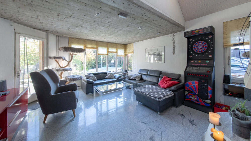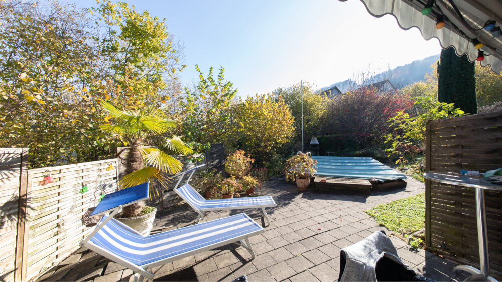 La situation calme et ensoleillée avec beaucoup d'intimité fait de cette maison un lieu de détente. Vous trouverez ici votre nouvelle maison pour l'avenir. Cette charmante propriété à l'abri des regards offre, sur plus de 127 m² de surface habitable (sans compter les surfaces annexes), suffisamment d'espace pour une famille avec enfants ou pour des couples qui souhaitent vivre dans un quartier résidentiel paisible. Le vaste jardin avec piscine et son ruisseau invite à la détente et au repos, tandis que la cheminée crée une atmosphère chaleureuse les jours de grand froid. En un coup d'œil : + QUALITÉ DE CONSTRUCTION : construction solide, chauffage au gaz + PRIVÉ : situation inconstructible et calme, impasse + ETAT : bien entretenu, prêt à être habité + POTENTIEL : possibilité de surélévation de plus de 760m2, coefficient d'utilisation de 1,7 (890,80m2) en respectant la distance au cours d'eau + ANNEXES : Atrium, cheminée, nouvelle cuisine, WM/Tumbler, local de bricolage, débarras, cellier, cave + JARDIN : grand jardin avec terrasse couverte et piscine (chauffée à l'énergie solaire), à côté du ruisseau du village. + PARKINGS : 1 place extérieure et 2 places de garage avec accès direct à la maison. + OBJET DE RENDEMENT : complexe intéressant et passionnant En cas d'intérêt, nous vous envoyons volontiers une description détaillée de l'objet, y compris toutes les informations, et nous nous réjouissons de pouvoir vous conseiller personnellement lors d'une visite. WENET AG - Immobilier de KI Group AG since 1974.