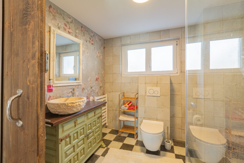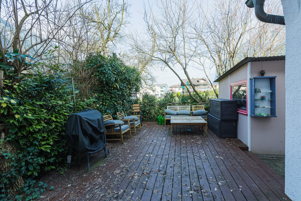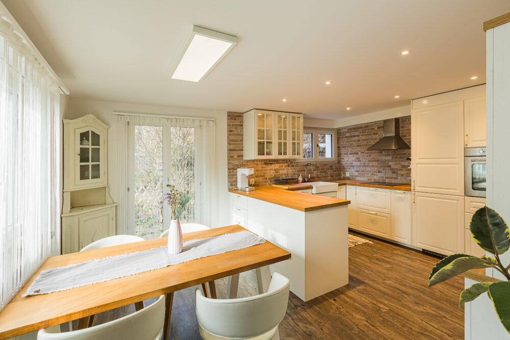Ein schmuckes Raumwunder mit diversen Extras welche Sie entzücken werden. Neuwertig da mit viel Liebe zum Detail im Jahr 2022/2023 saniert und mit dem gewissen Etwas die Akzente gesetzt. Hier wird es Ihnen nicht langweilig, denn Sie finden hier Materialien und Ideen die Zeuge sind von einem Künstlerischen Flair den wir wirklich als einzigartig benennen dürfen. Komplett modernisiert mit gehobener Ausstattung an sehr ruhiger Lage ohne Durchgangsverkehr, am Ende einer Sackgasse. Highlights: - sonnige, ruhige Lage mit Bergsicht - hochwertig saniert 2022/2023 - zwei Nassbereiche mit Fenster - grosse Zimmer - Wärmepumpe - pflegeleichter Garten - Platz für 2 Fahrzeuge Die 118 m² Wohnfläche verteilen sich auf 6 Zimmer, davon 4 Schlafzimmer, und 2 Bäder. Im lichtdurchfluteten Wohnzimmer mit offener Küche und Zugang zur Terrasse, wo Sie entspannte Abende mit Familie und Freunden verbringen können. Den unvergänglichen Landhaus-Effekt in der Küche schenkt einen warmen familiären Stil. Das Grundstück umfasst 357 m² und verfügt über eine idyllische Gartenfläche von 80 m². Hier können Sie die Sonne in vollen Zügen genießen. Zudem bietet eine große Gartenhütte viel Stauraum. Interessiert? Wir stehen Ihnen für Fragen oder eine Besichtigung sehr gerne zur Verfügung.