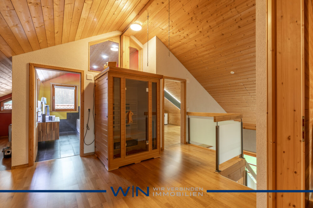 Dieses charmante Holzhaus bietet ein warmes und einladendes Zuhause für die ganze Familie. Die hellen Räume sorgen für eine freundliche Wohnatmosphäre und lassen viel Raum für individuelles Einrichten. Eine gemütliche Veranda lädt zum Verweilen ein und erweitert den Wohnraum nach draussen. Für erholsame Stunden steht eine moderne Infrarotsauna zur Verfügung, während die kleine Werkstatt Platz für Kreativität und handwerkliche Arbeiten bietet. Das Haus ist lastenfrei und sofort bezugsbereit, ideal für alle, die ohne Umwege in ihr neues Zuhause einziehen möchten.