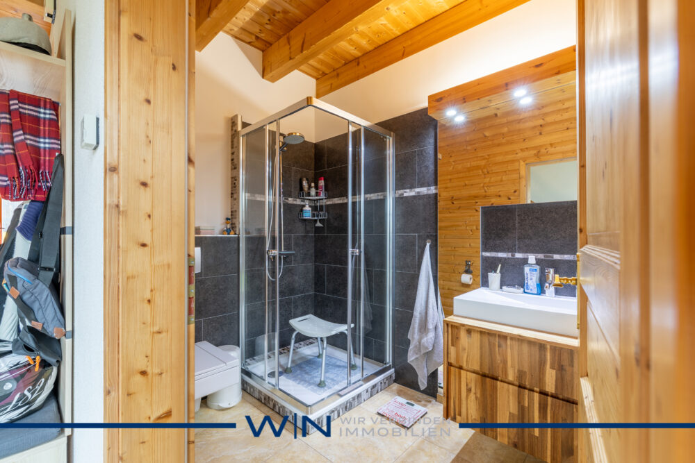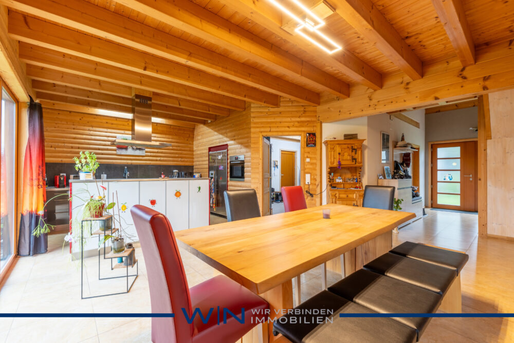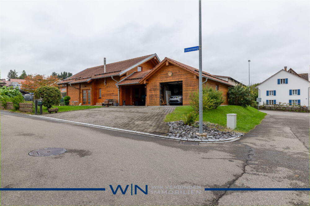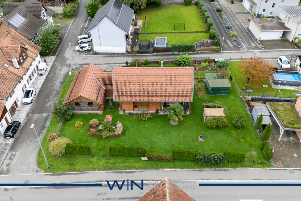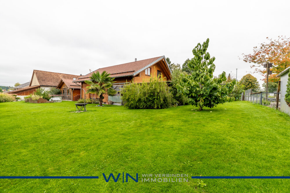 Dieses charmante Holzhaus bietet ein warmes und einladendes Zuhause für die ganze Familie. Die hellen Räume sorgen für eine freundliche Wohnatmosphäre und lassen viel Raum für individuelles Einrichten. Eine gemütliche Veranda lädt zum Verweilen ein und erweitert den Wohnraum nach draussen. Für erholsame Stunden steht eine moderne Infrarotsauna zur Verfügung, während die kleine Werkstatt Platz für Kreativität und handwerkliche Arbeiten bietet. Das Haus ist lastenfrei und sofort bezugsbereit, ideal für alle, die ohne Umwege in ihr neues Zuhause einziehen möchten. Alles auf einen Blick: + PARKING: 2 Garagenparkplätze, 4 Aussenparkplätze + LAGE: Zentral, Schule 4 Min zu Fuss, Einkaufsmöglichkeiten 2-3 Min mit dem Auto erreichbar + NUTZUNG: kann auch als Bauland genutzt werden, genügend Platz für einen Pool + HAUS: Holzhaus + BEZUG: per Sofort + WOHNFLÄCHE: 203 m² – helle Räume + HIGHLIGHT: Infrarotsauna, kleine eigene Werkstatt, Veranda Bei Interesse senden wir Ihnen gerne einen ausführlichen Objektbeschrieb inklusive sämtlichen Informationen und freuen uns Sie persönlich an einem Besichtigungstermin beraten zu dürfen. WENET AG - Immobilien der KI Group AG since 1974