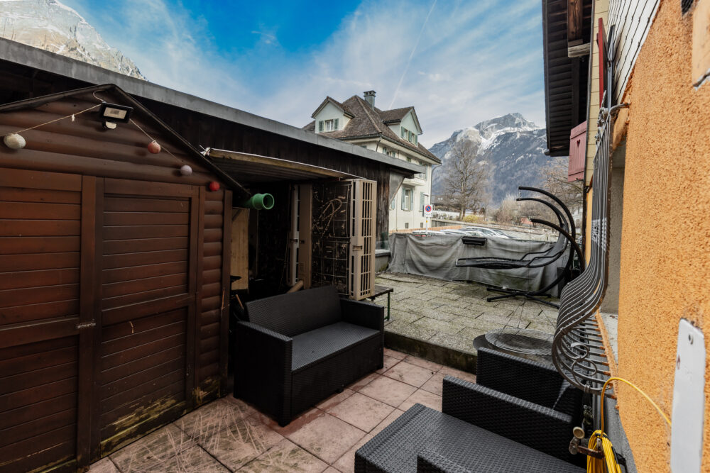 Situation familiale et calme à Glaris Sud, Schwanden, sur une charmante route secondaire, légèrement surélevée et à l'écart du trafic du centre, tout en étant proche de toutes les activités en peu de temps. Dans une impasse sans trafic de transit, vous profitez d'un voisinage sûr et détendu - idéal pour les familles et les personnes proches de la nature.