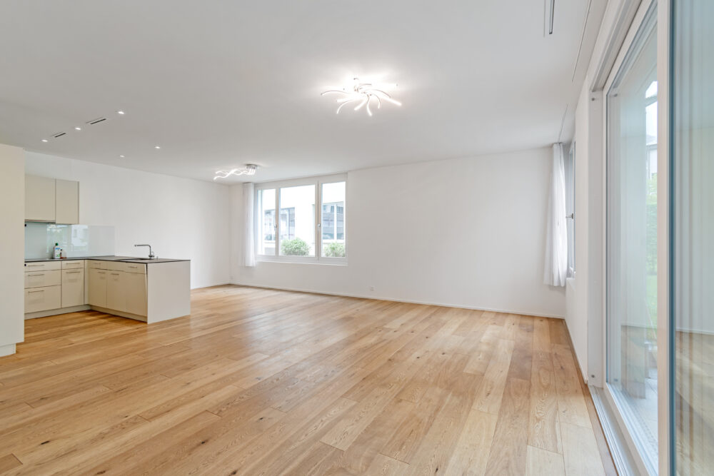 Eine einzigartige 4.5 Zimmer-Gartenwohnung (derzeit ausgebaut als 3.5 Zimmer), mit traumhaft beeindruckenden Raumhöhen von ca. 3 Metern. Diese neuwertige Wohnung bietet auf 113 m² Wohnfläche Platz für alle Ideen, eine Familie oder auch für Paare, die grosszügiges und barrierefreies Wohnen mit Grünanstoss und Garten schätzen.