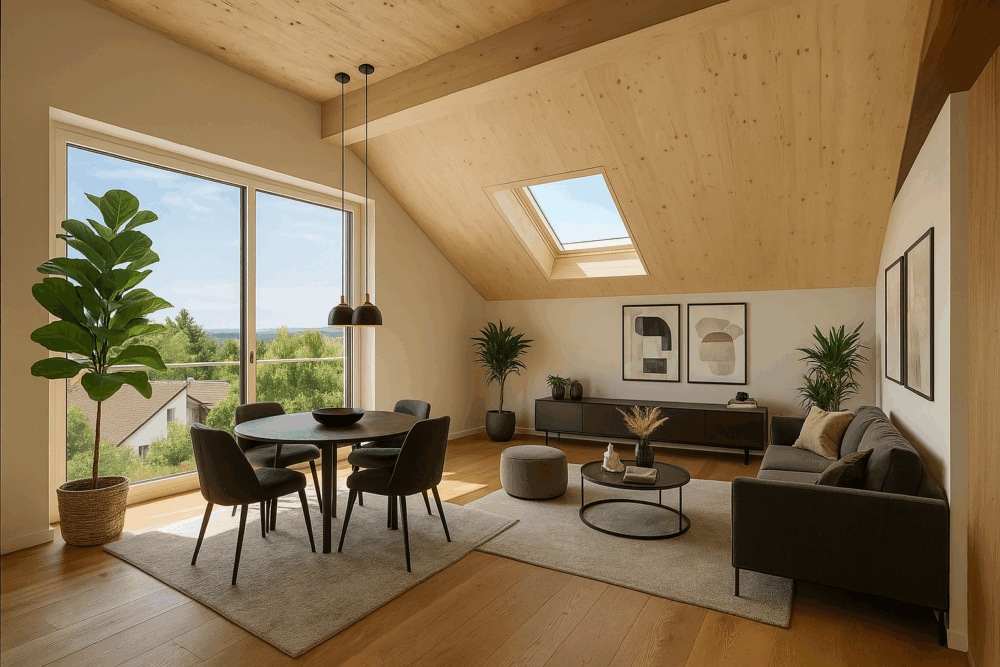 Wenn Sie einzigartige Architektur und grosszügige Raumhöhen schätzen und sich besonders im obersten Stockwerk zuhause fühlen, wird Sie diese Wohnoption begeistern.