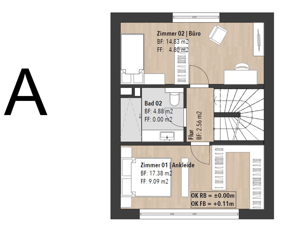 + BAUWEISE: Aufteilung n.A. / z.B. individuell, Massivbauweise, SIA Norm 181