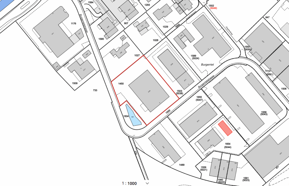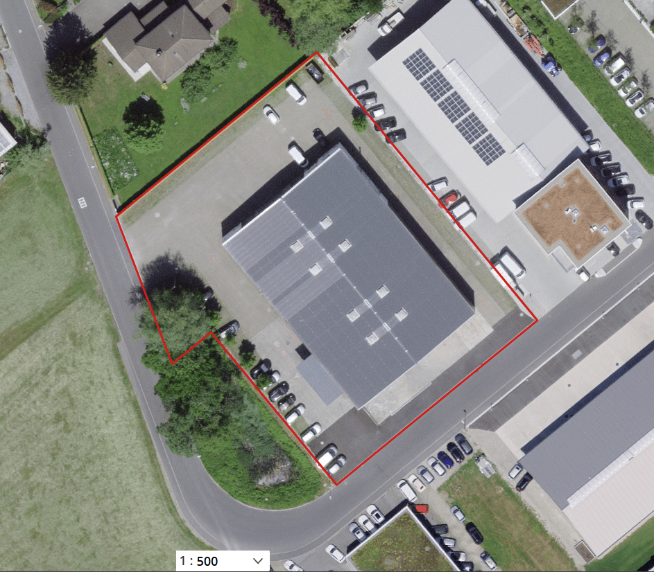 + FLÄCHE: Einstellhalle ca. 1’075m2, Büro ca. 317 m2