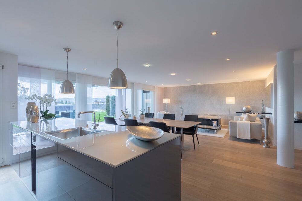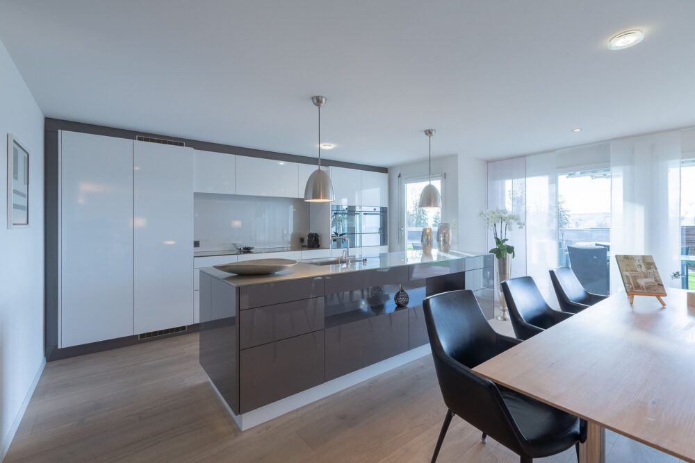 Edel, gehoben, modern, offener Grundriss, sehr guter Schnitt der Räume, Parkett-Boden, Living mit Weitsicht, Terrasse für die Schlafzimmer mit See-Sicht, eine Küche mit viel Stauraum dank intelligentem Stauraum, einladend und hell, sonnige Lage, gepflegter und pflegeleichter Garten mit Extras und noch vieles mehr. Ein sehr gelungenes Paket, welches sich Ihren Bedürfnissen komplett anpassen wird wie kein anderer – ein Wohntraum wird zu Ihrem Glücksfall.