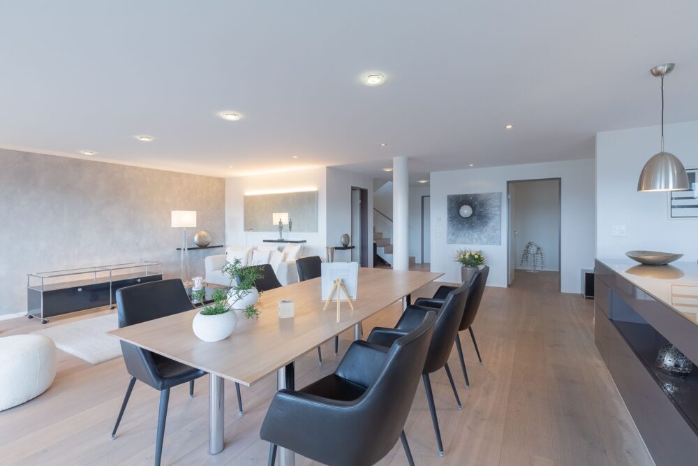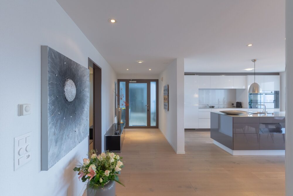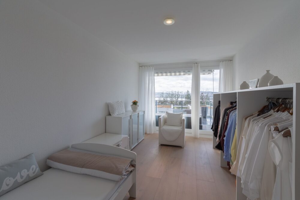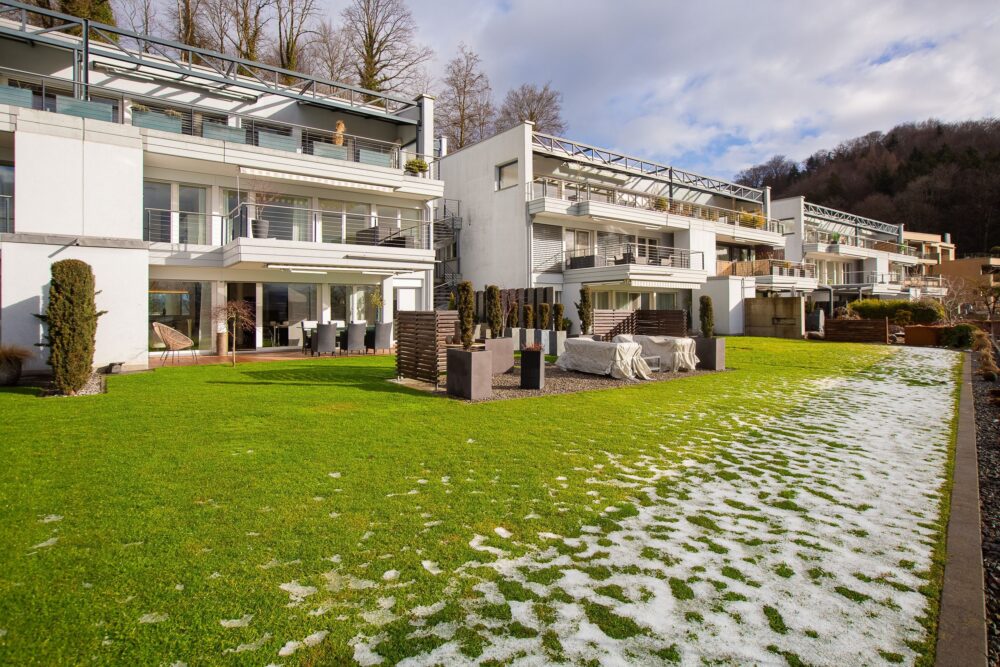Ein Raumwunder auf zwei Ebenen, weit und sehr grosszügig, mit grosser Terrasse und einer Top-Aussicht aus jedem Zimmer. Einfach perfekt im Grundriss, dank eines angepassten Grundrisses, welcher nicht nur schönes Wohnen bietet, sondern sich auch dank den vielen Nebenräume als perfekter Unterstützer im Alltag anbietet. Das hochwertige Parkett schenkt im ganzen Ambiente eine angenehme Willkommenswärme, auch dank der aufeinander abgestimmten Farben vom Living, ob die Wände, die Küche, die Arbeitsflächen, einfach alles wurde mit viel Liebe zum Detail erneuert und perfektioniert. Vom Living Bereich erreichen Sie die gedeckte Terrasse sowie Ihre persönliche “See-Lounge-Oase im Grünen” welche mit hochwertigen “Wood-Shooters” sich perfekt im Grünen anpassen und Ihnen den Sonnenuntergang einfach auf einem silbernen Tablett liefern wird.
