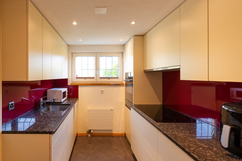 Die Küche wurde sehr intelligent erneuert und bietet sehr viel Stauraum und sogar eine kleine Nische zum Essen. Im oberen Bereich befinden sich zwei grosse Schlafzimmer und ein Kinderzimmer. Der Nassbereich im oberen Bereich ist sehr grosszügig und dank vielen Fenster sehr einladend. Die Schlafzimmer befinden sich auf der ruhigen Seite, somit kann hier Ihren Schlaf niemand stören und es verteilt sich die Fläche angenehm auf den Etagen.