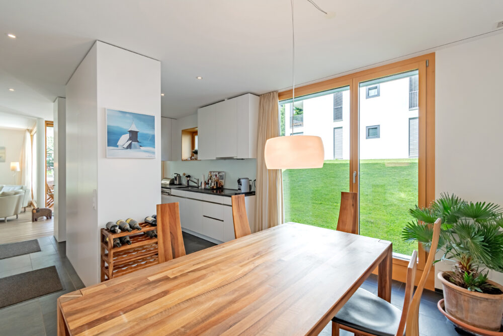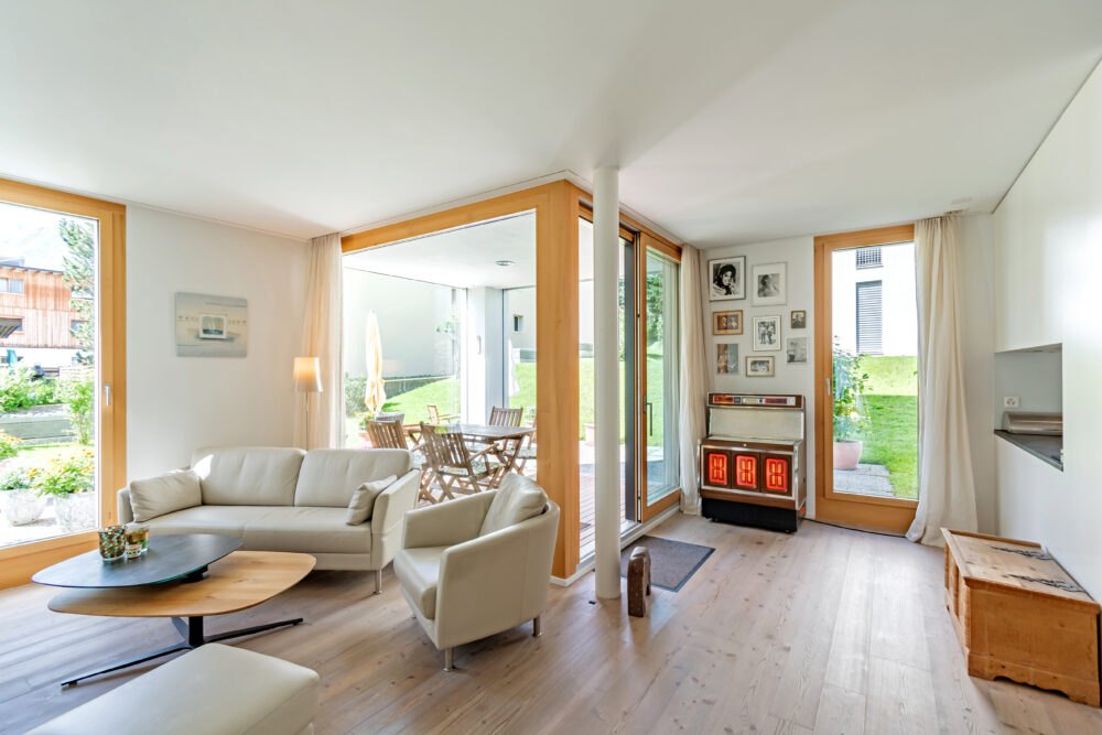 Neuwertig, modern und einem Aussenbereich der Extraklasse. Hier werden Ihre Wünsche erfüllt und übertroffen. Diese grosszügige und helle 4.5 Zimmer-Erdgeschosswohnung überzeugt mit fantastischem Grundrisskonzept und viel Sitzplatz/Grünfläche - Willkommen in der Welt der Extraklasse. Auf einen Blick: + POTENTIAL: Fest-/ Zweit- und Ferienwohnsitz möglich + AUSBAU: Sehr hochwertig, modern, kein Investitionsbedarf, Bezugsbereit, Luft-Wasser-Wärmepumpe, Elektrische Lamellenstoren, Cheminée, Bodenheizung, heller Lärchenboden + INNENBEREICH: 3x Schlafzimmer, 1x En-Suite Badezimmer mit BAD/WC, 1x Tageslicht-Nasszelle mit DU/WC, separierte Küche mit Essbereich, Living-Room, Gartenzugang divers + LAGE: Sonnig, ruhig, familienfreundlich, zentral + HIGHLIGHTS: Grosser Gartenbereich, gedeckte Terrasse, Sitzplatz, Garagenparkplatz a.A., Kellerabteil, 2x Skiraum, neuwertig Bei Interesse senden wir Ihnen gerne einen ausführlichen Objektbeschrieb inklusive sämtlichen Informationen und freuen uns Sie persönlich an einem Besichtigungstermin beraten zu dürfen. WENET AG – Immobilien der KI Group AG since 1974.