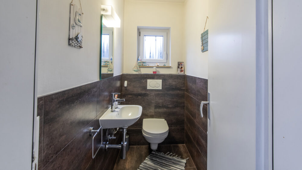 Die Gemeinde Büsingen am Hochrhein gehört zum Landkreis Konstanz in Baden-Württemberg und ist geographisch aussergewöhnlich: Sie befindet sich als deutsche Enklave mitten in der Schweiz. Der Bahnhof, nur wenige Gehminuten entfernt, ermöglicht über das SBB-Netz bequeme Verbindungen in viele Schweizer Städte. Zum Flughafen Zürich benötigen Sie etwa 74 Minuten mit dem Auto. Mit dem Bus oder dem Auto erreichen Sie das benachbarte Schaffhausen in rund fünf Minuten und können dort den berühmten Rheinfall besichtigen. Büsingen selbst punktet mit einer soliden Infrastruktur, vielfältigen Einkaufsmöglichkeiten und einer Auswahl an Restaurants und Cafés. Die malerische Umgebung lädt zu Outdoor-Aktivitäten wie Wandern, Radfahren oder Wassersport ein. Dank der ruhigen Lage ist dieses Haus perfekt für Erholungssuchende.