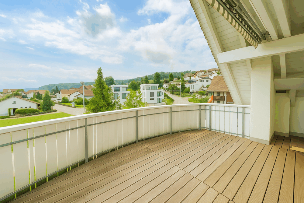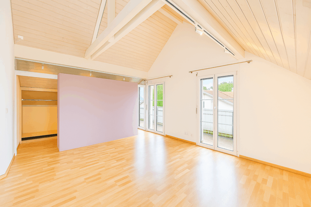 Wer grosszügige Räume, natürliche Ruhe und ein Zuhause mit Charakter sucht, wird hier fündig. Diese charmante Dachwohnung bietet ein besonderes Wohngefühl – lichtdurchflutet, offen gestaltet und geprägt von stilvollen, weissen Sicht-Holzkonstruktionen. Die offene Wohnküche mit Kochinsel bildet das Herzstück: ein einladender Treffpunkt mit viel Platz und direktem Zugang zum Balkon. Der Lift führt Sie bequem und mit Privatsphäre direkt in die oberste Etage. Die Wohnung verfügt über drei Schlafzimmer – eines davon mit begehbarem Kleiderschrank, En-Suite-Badezimmer und eigenem Balkonzugang. Zusätzlich steht Ihnen ein zweites Badezimmer mit Fenster sowie Dusche zur Verfügung. Praktisch: Ein separates Reduit mit integriertem Waschturm und zusätzlichem Stauraum befindet sich direkt in der Wohnung – kein Gang in den Keller nötig. Die VELUX-Dachfenster sind mit lichtdichten Storen ausgestattet, um Hitze draussen zu halten und auch im Sommer ein angenehmes Raumklima zu schaffen. Geniessen Sie von den Fenstern und den zwei Balkonen aus eine wunderschöne Weitsicht über die Dächer – eine seltene Kombination aus Ruhe, Natur und stilvollem Wohnen. Auf einen Blick: HOLZELEMENTE, weisse, sichtbare Holzkonstruktionen HOHE RÄUME, Deckenhöhen bis unters Dach WOHNKÜCHE, eine offene Küche mit Insel, eingebettet in den grosszügigen Wohnbereich 2 BALKONE, Ganztages-Besonnung vom Frühstück bis Abendessen EN-SUITE BADEZIMMER, überzeugt mit Badewanne, einer Dusche und einem Fenster BEGEHBARER KLEIDERSCHRANK, gleich im grossen Schlafzimmer für Ihre persönliche Garderobe REDUIT, praktischer zusätzlicher Stauraum direkt in der Wohnung 2 PARKPLÄTZE, direkt von der Wohnung aus mit dem Lift erreichbar zu je CHF 35'000 Bei Interesse senden wir Ihnen gerne einen ausführlichen Objektbeschrieb inklusive sämtlichen Informationen und freuen uns, Sie persönlich an einem Besichtigungstermin beraten zu dürfen. WENET AG – Immobilien der KI Group AG since 1974.