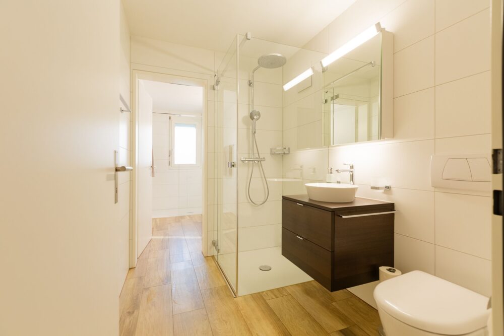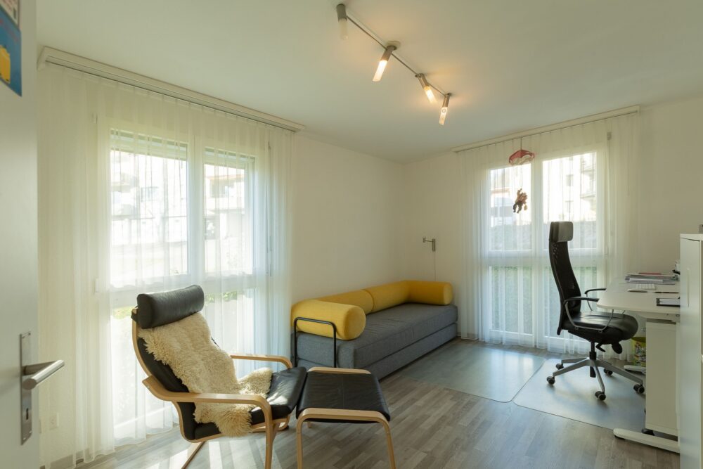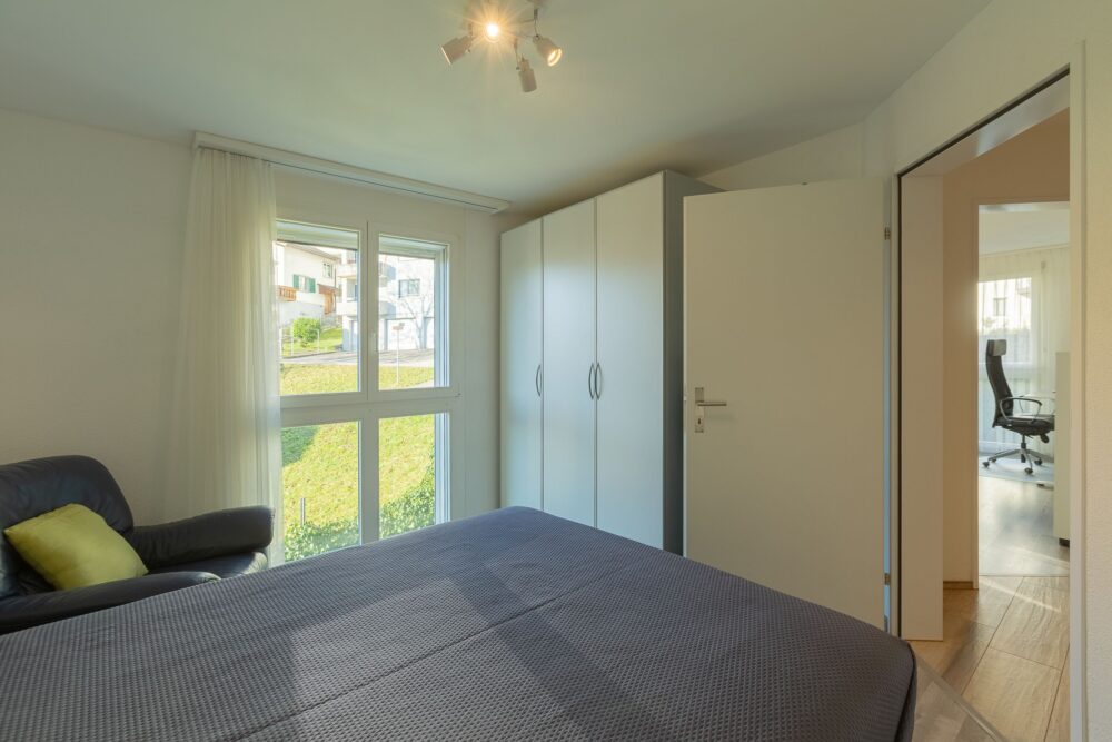 Die Zimmer bieten eine angenehme Grösse und das Eltern-Schlafzimmer ist direkt mit einem moderner Nassbereich verbunden. Walk-in Dusche mit hochwertigen Apparaten und Fenster, einfach ein Traum. Für Ihre Lieben und Gäste steht Ihnen ein weiteres Bijou als Nassbereich mit DU/WC zur Verfügung – alle Nassbereiche wurden komplett renoviert. Ein weiteres Plus ist die WM/TU direkt in der Wohnung in einem Dispo-Raum, welcher sich im Alltag sehr nützlich erweisen wird.