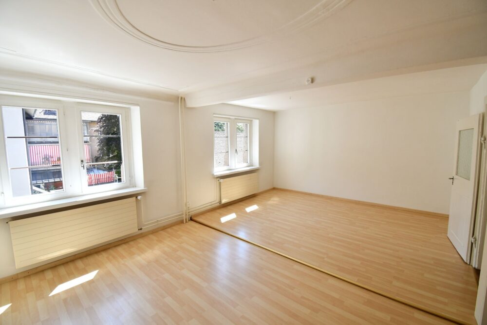 Das Lokal befindet sich im Erdgeschoss mit Schaufensterfront, hat eine automatische Glaseingangstüre und teilweise Raumüberhöhen von fünf Metern. Dieses Lokal eignet sich für sehr vieles, wie zum Beispiel: Büro, Verkaufsladen, Praxisraum, Fitnessraum, Therapieraum etc. Die Immobilie verfügt über grosse, helle Zimmer mit sehr guter Raumhöhe und schöne Parkettböden. Eines der Zimmer ist offen geschnitten und kann sowohl sehr gut als Wohnzimmer oder evt. als Doppelnutzung Büro/Praxis dienen. Die Küchen, die Toilette und Badezimmer mit Badewanne verfügen über normalen Komfort.