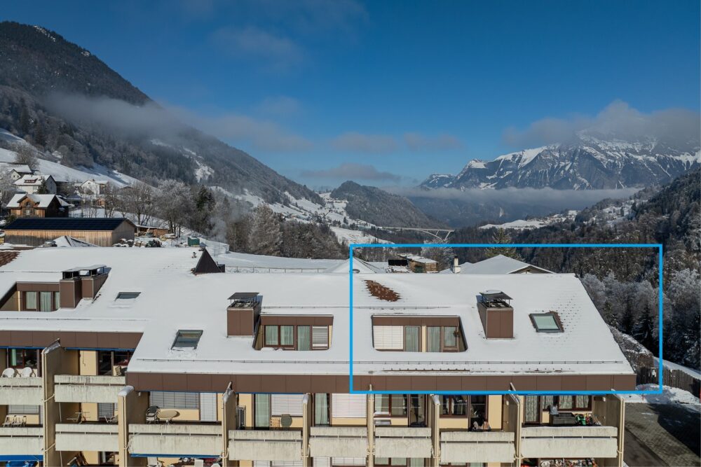 Diese Fest-/Zweitwohnsitz-/Ferienwohnung kann auf Wunsch vermietet oder leer und bezugsbereit übernommen werden. Über den Dächern von Valens, komfortabel via Lift erreichbar, zentral und sehr attraktiver Aussichts- und Sonnen-Lage, in unmittelbarer Nähe zum Naherholungsgebiet, bietet sich diese Südwest orientierte 3.5 Zimmer-Dachwohnung im obersten Stock / Attikageschoss bzw. Dachgeschoss (komplett rollstuhlgängig) an. Über die gut beleuchtete Tiefgarage gelangen Sie bequem via Lift zum Attikageschoss, der über 80 m2 grossen Wohnung, mit einem äusserst durchdachten Raumprogramm und höchster Privatsphäre, in allen Belangen. Mehrere Zugänge zum attraktiven Aussenbereich, von beiden Schlafzimmern auf der Südseite erreichen Sie die herrliche Süd-Terrasse, mit Privacy und unverbaubarer Aussicht. Anschliessend an den Eingangsbereich, inklusive grossem Estrich, und Einbauschränken als Garderobe befindet sich das geräumige und lichtdurchflutete Wohnzimmer mit offener Küche und Bartheke, sowie direktem Zugang zum weiteren Süd-Balkon, vollständig überdacht. Facts - Sonnige Süd-West Ausrichtung - Höchste Privatsphäre - West-Balkon - Süd-Terrasse - Ski/Nebenraum/ Kellerabteil - Inklusive 1 x Tiefgaragenplatz Genügend Platz für einen Urlaub zusammen mit Ihren Liebsten, Familie & Co. (inkl. Cheminée im Wohnbereich). Der Ausbau der Wohnung ist bewohnbar, in einem einfachen Ausbaustand und die Wohnung wird vollständig frisch gestrichen sowie gereinigt auf Wunsch übergeben. Als Abrundung dieser besonderen 3.5 Zimmer-Ferienwohnung ist ein Kellerabteil, ein Estrich im Preis bereits inbegriffen. Den Bewohnern steht zudem ein gemeinschaftlicher Waschraum, ein Abstellraum sowie eine Sauna zur gemeinschaftlichen Benutzung zur Verfügung sowie ein neue renovierte Tiefgarage, mit exklusivem Zugang. Weitere Informationen erhalten Sie gerne auf Anfrage und wir freuen uns über Ihre Kontaktaufnahme.