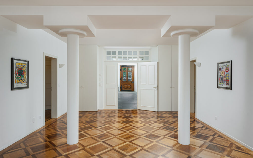 Ein Kunstwerk aus der Feder des Architekten Gustav Mossdorf, geprägt von den klaren Strukturen der Neorenaissance und einem fliessenden Grundriss, der Harmonie, Eleganz und Geschichte zu einer stimmigen Einheit verbindet.