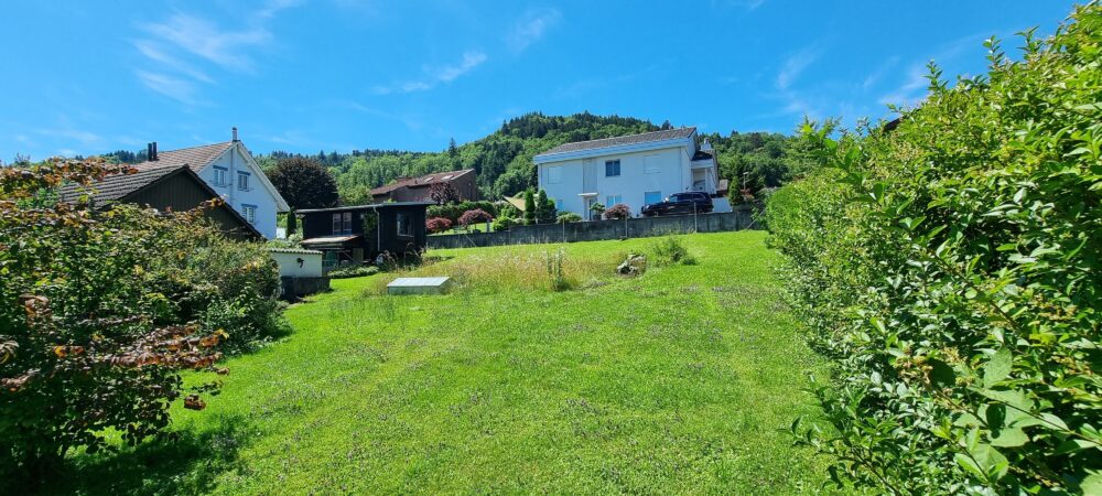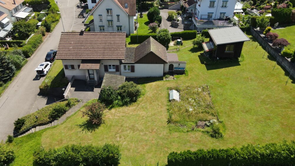 In einer ruhigen Quartierstrasse gelegen, bietet das Grundstück durch seine Hanglage einen freien, unverbaubaren Blick auf die umgebende Landschaft. Die Südwest-Ausrichtung sorgt für lichtdurchflutete Stunden und beeindruckende Sonnenuntergänge.