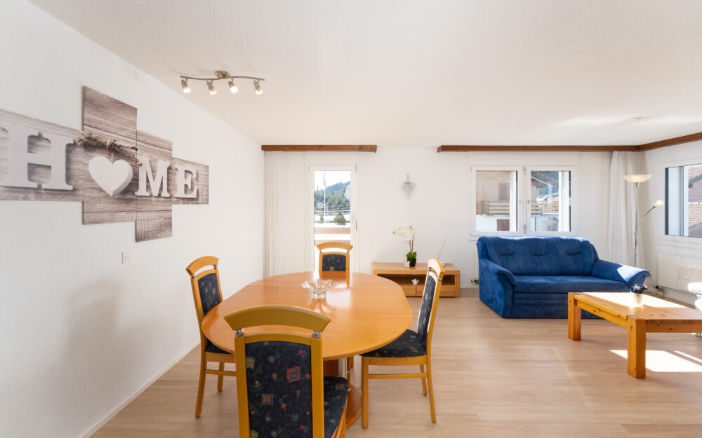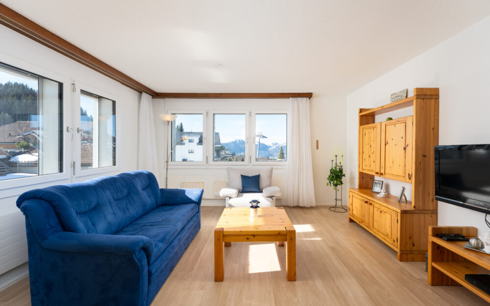 Die stilvoll modernisierte Ferien-Wohnung überzeugt durch ihren ausgezeichneten Pflegezustand und ist bezugsbereit. Grosszügige Fensterflächen inszenieren die umliegende Berglandschaft wie ein lebendiges Gemälde und schaffen eine lichtdurchflutete Wohnatmosphäre. Die Liegenschaft wurde Innen wie Aussen mit grösster Sorgfalt unterhalten und präsentiert sich in makellosem Zustand. Ein besonderes Highlight ist die ideale Südausrichtung, die selbst in den Wintermonaten zahlreiche Sonnenstunden garantiert und den Wohnräumen eine warme, einladende Ausstrahlung verleiht.