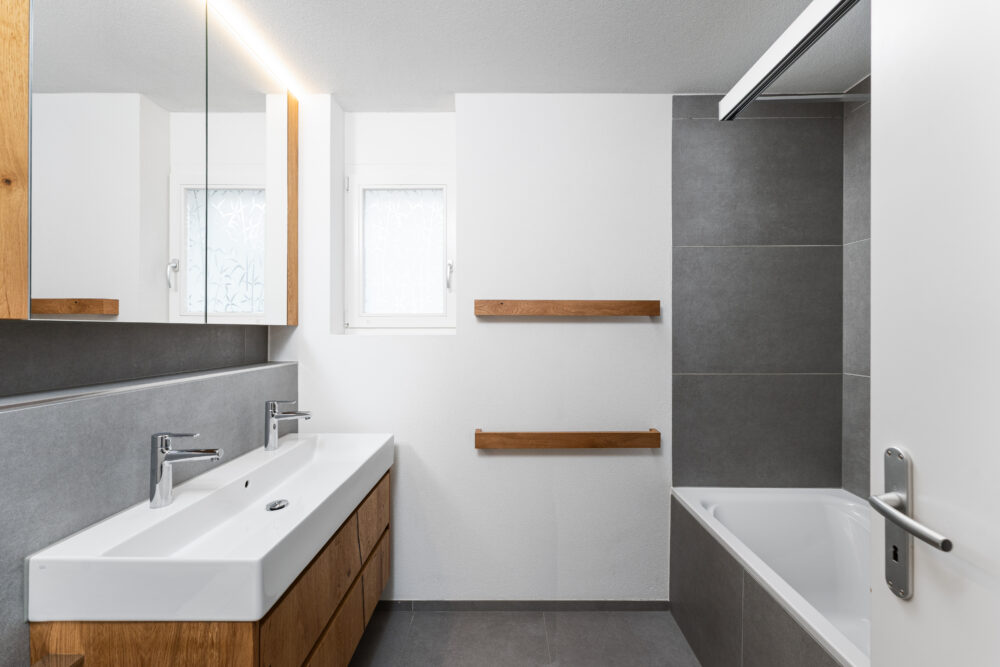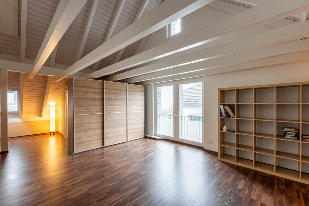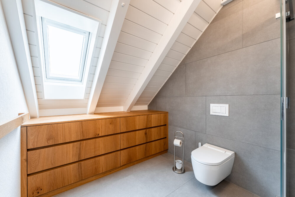 Hohe, offene Räume mit einem exklusiven Nassbereich. Ideale Rückzugsoase zum Lesen, Arbeiten und noch vieles mehr.