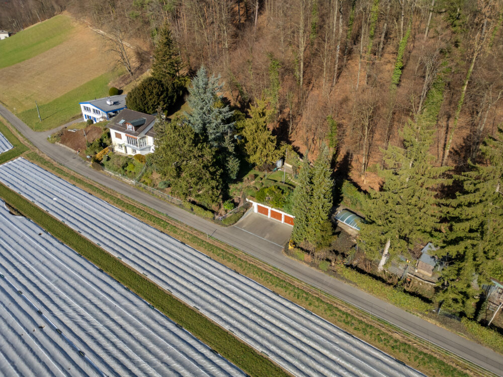 Ihr neues Zuhause liegt in Winkel Zürich – eingebettet in eine traumhafte Landschaft aus weiten Feldern und einem idyllischen Wald, der direkt an Ihr Grundstück grenzt. Perfekt für entspannte Spaziergänge, sportliche Runden oder kleine Entdeckungstouren mit den Kindern – die Natur beginnt hier direkt vor Ihrer Haustür. Mit nur einem Nachbarn in der Umgebung geniessen Sie absolute Privatsphäre und eine wohltuende Ruhe. Dank der Hanglage dürfen Sie sich zusätzlich über eine schöne Weitsicht freuen. Und wenn es doch mal in die Stadt oder in die Ferien gehen soll? Kein Problem – die Autobahn erreichen Sie in wenigen Minuten und der Flughafen Zürich liegt weniger als 10 Minuten entfernt. Auch eine Bushaltestelle befindet sich in bequemer Nähe, falls das Auto einmal stehen bleiben soll. Die täglichen Besorgungen erledigen Sie bequem in den nahegelegenen Dörfern Winkel und Rüti, wo Ihnen Einkaufsmöglichkeiten, Schulen und Kindergärten zur Verfügung stehen. Hier wohnen Sie mitten im Grünen und doch hervorragend angebunden – ein seltenes Zusammenspiel von Lebensqualität, Natur und Komfort.