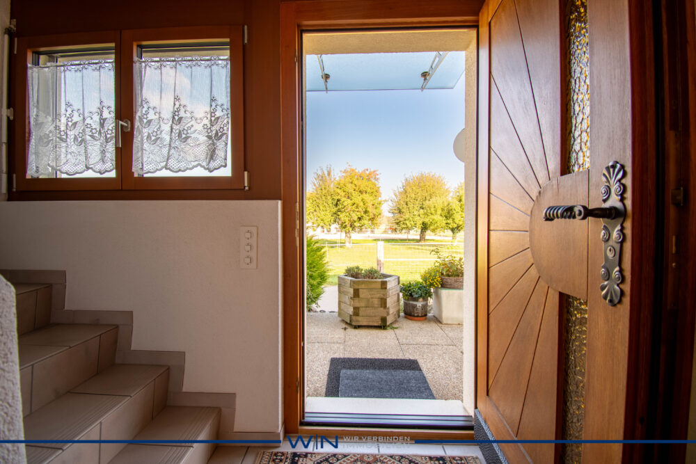 In unmittelbarer Nähe befinden sich Felder und Spazierwege, die zu erholsamen Spaziergängen oder Fahrradtouren einladen. Gleichzeitig sind Einkaufsmöglichkeiten, Schulen und öffentliche Verkehrsmittel in wenigen Minuten erreichbar, was den Standort besonders alltagstauglich macht.